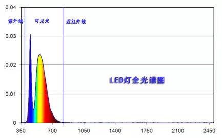 全光譜圖如下圖所示,LED 燈廣泛應用在各種照明環(huán)境,應用量在逐步增加。