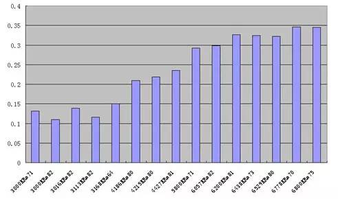 圖:LED 照明光源藍光輻射量比值(LED 為不同廠家封裝的產(chǎn)品)。
