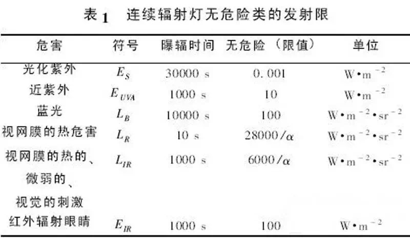 對于LED 的藍光輻射對視網(wǎng)膜的危害指標,可以參考以下表中參數(shù):