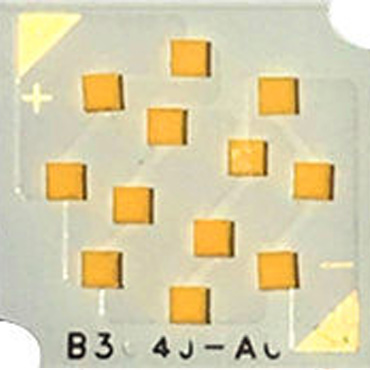 CSP工藝:芯片級封裝 ,有效縮減封裝體積,小、薄而輕,迎合了目前LED照明應(yīng)用微小型化的趨勢,設(shè)計應(yīng)用更加靈活,打破了傳統(tǒng)光源尺寸給設(shè)計帶來的限制,比較適用于點光源,以及有投射距離,發(fā)光角度,中心照度等要求的方向性投射類照明領(lǐng)域,如背光源,閃光燈,投影儀,強光照明燈具(車燈、探照燈、手電筒、工作燈、戶外高棚燈、景觀等),小角度照明燈具等。無需金線、支架、固晶膠等,減少中間環(huán)節(jié)中的熱層,可耐大電流,安全性、可靠性更高。